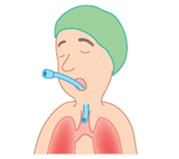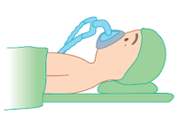 鼻と口にマスクを当てて酸素を吸っていただきます。気持ちをゆったりとさせてゆっくり呼吸をして下さい。意識をなくすためのお薬を点滴にいれると、いつの間にか眠ってしまいます。 - 《2.呼吸のチューブやマスクを挿入します》